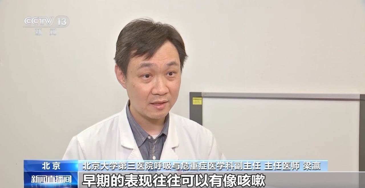 北京大学第三医院呼吸与危重症医学科副主任 主任医师 梁瀛:早期的表现往往有像咳嗽、气短的表现,但是有一些病人如果在短时间内接触的量比较大,病人也可以出现进展性的呼吸困难。另外有些时候从胸片或CT也可以出现快速进展的肺部炎症的改变。